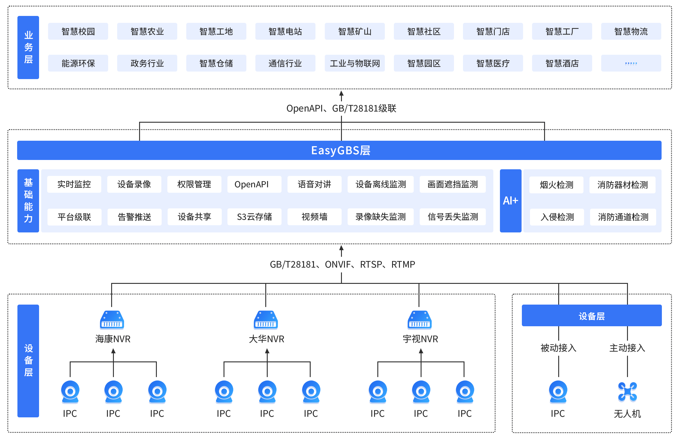在当今数字化时代,视频监控在各个领域都起着至关重要的作用。国标GB28181视频平台EasyGBS凭借其强大的功能和卓越的性能,成为了视频监控领域的佼佼者。作为一款基于国标GB28181、RTSP、ONVIF、RTMP协议的视频监控平台支持多路设备同时接入,为用户提供了丰富的视频能力与服务,可广泛应用于多样化场景中。