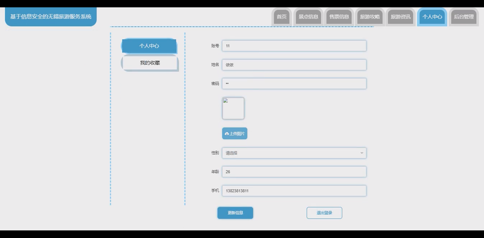3. 景点信息管理模块:管理员上传和维护景点详细信息,包括景点名称、地理位置、开放时间、门票价格、景点介绍、实景图片等;用户可根据景点类型、地理位置等条件查询景点信息,查看景点详情。