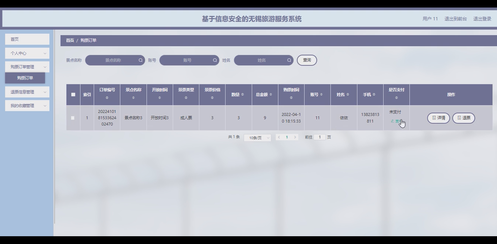 对游客而言,系统能够提供一站式的无锡旅游服务,包括景点查询、在线购票、订单管理、旅游攻略获取等特性,同时保障用户个人信息和支付安全,提升旅游出行的便捷性与安全感。对无锡旅游行业而言,框架可整合分散的旅游资源信息,实现景点、售票等数据的集中管理与共享,助力旅游企业精准对接游客需求,推动无锡旅游业向数字化、规范化方向发展。