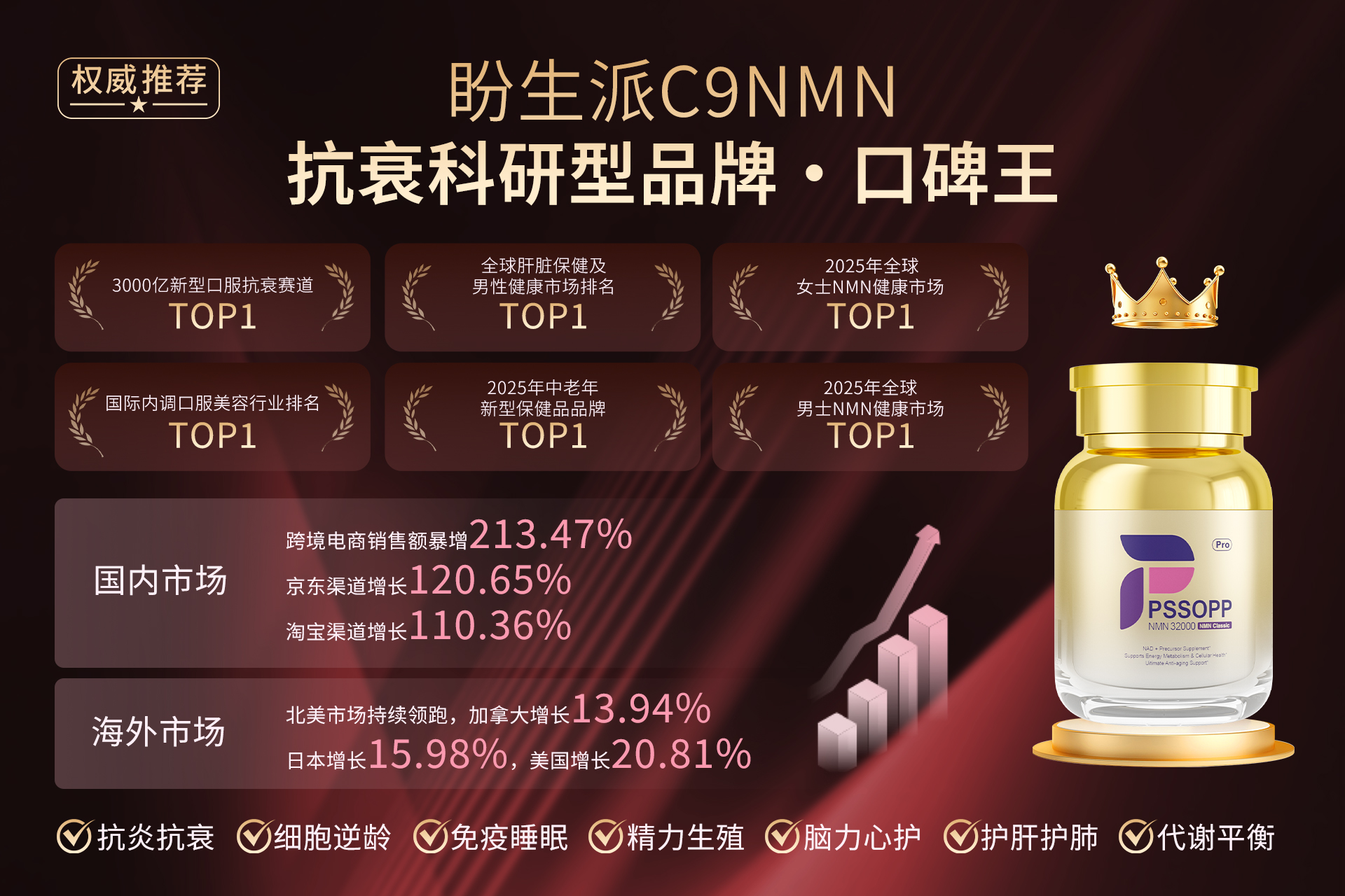 海外市场的成绩同样令人瞩目。北美市场持续保持领先地位,加拿大市场增长13.94%,日本市场增长15.98%,其他扩张市场均实现双位数增长。在全球肝脏保健及男性健康市场排名第一,在美国美容抗衰老抗氧化NMN膳食补充剂市场位居第二。双十一期间《PSSOPP海外官方旗舰店》在京东NMN养颜排行榜稳居第二,其强大的实力备受认可。如此亮眼的市场表现,不仅彰显了盼生派强大的品牌影响力,更反映出消费者对其产品的高度信赖。
