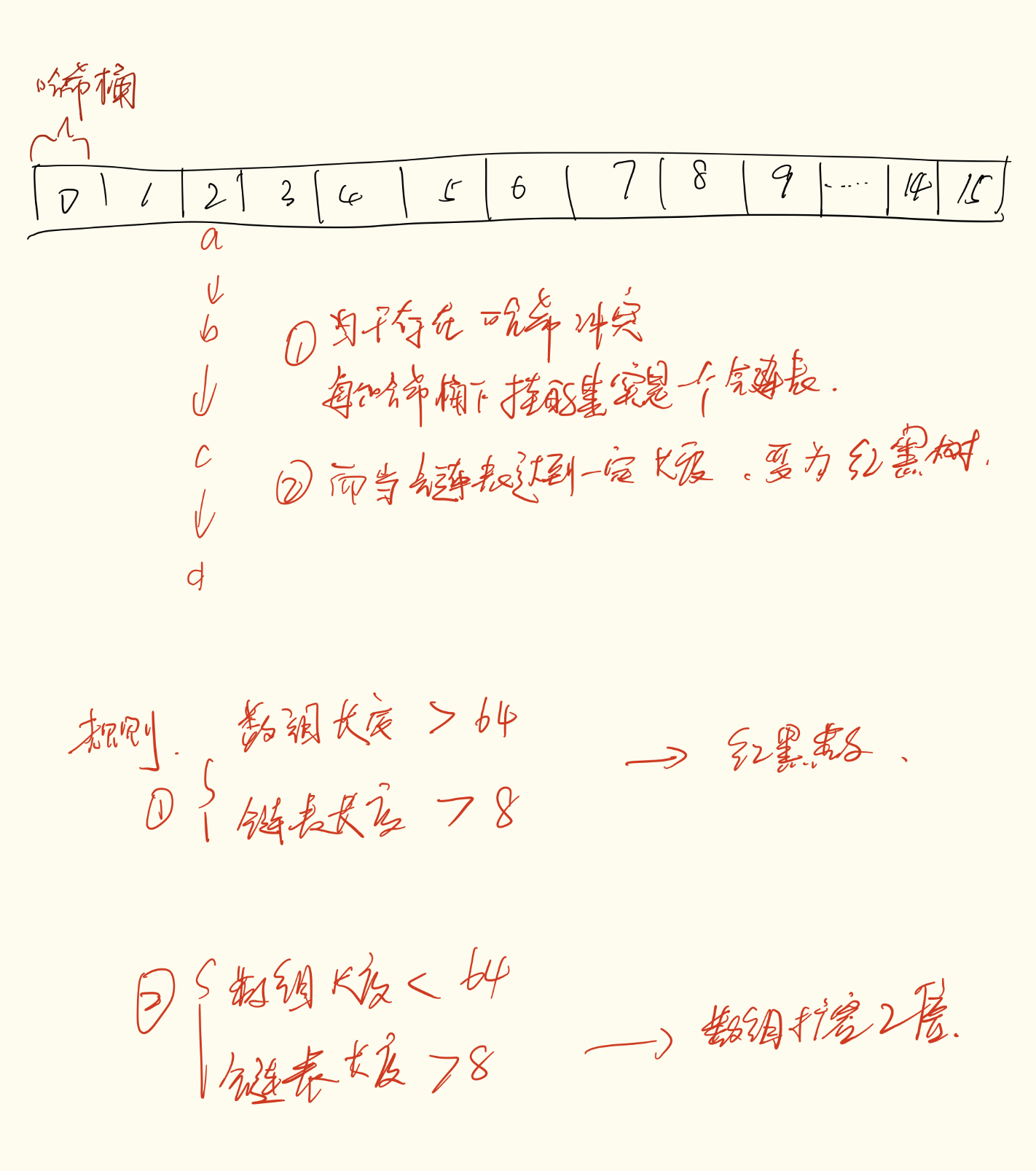 链表 / 红黑树:用于解决哈希冲突的结构。