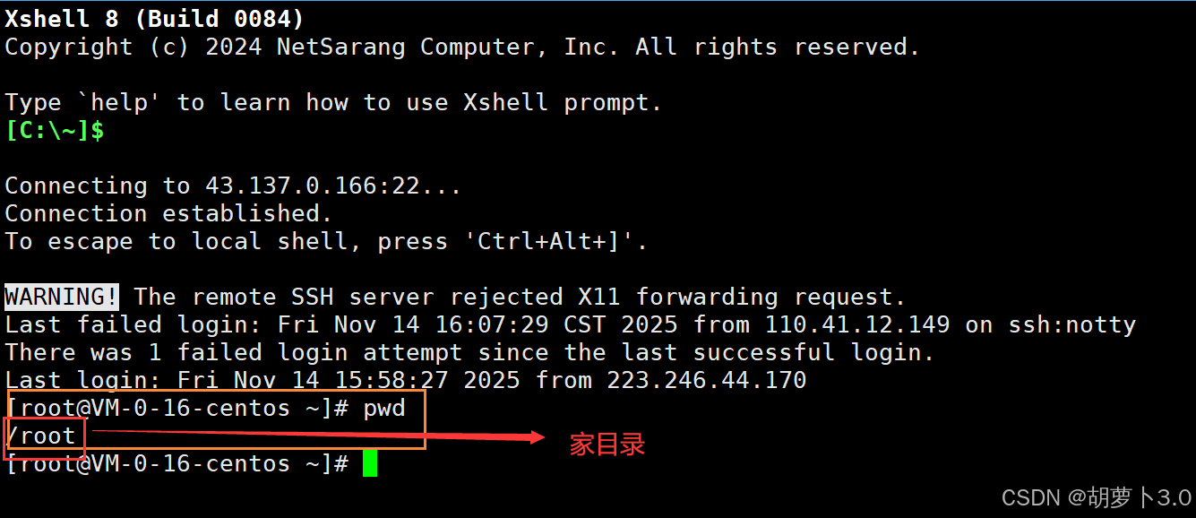所谓家目录就是操作系统用户登录环境后,默认所处的路径