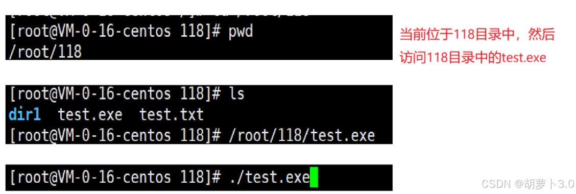 - 绝对路径:/root/118/test.exe 告诉系统,test.exe在什么路径下,test.exe在根目录下的root目录下的118目录下