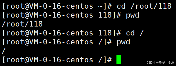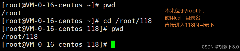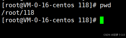 /root/118 表示当前处于根目录下的root目录下的118目录里面