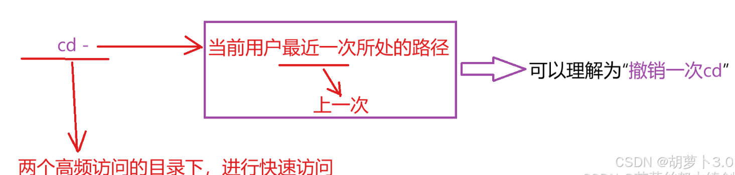 - cd -——两个高频访问的目录下进行飞快切换,切换到当前用户上一次所处的路径