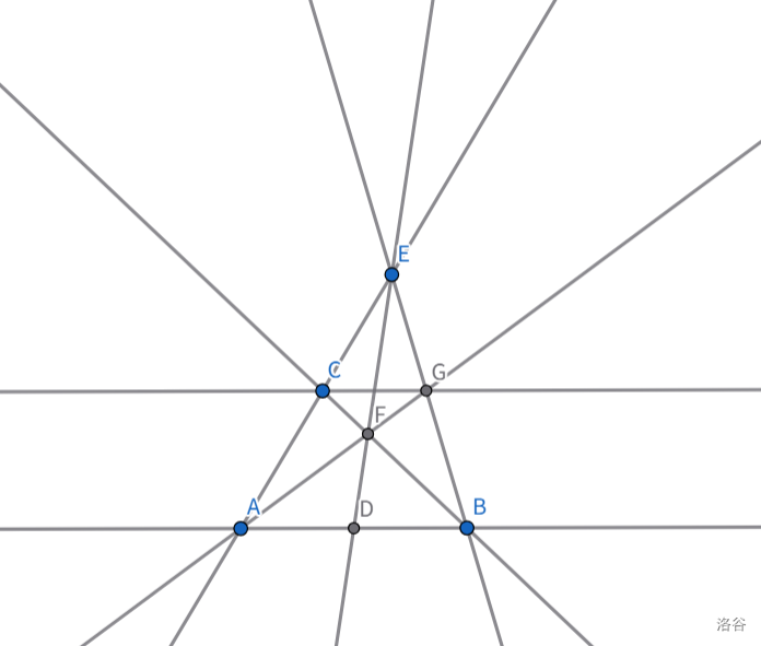 证明的话用赛瓦定理就显而易见了(后面的图可能大多用的是直线,见谅)。