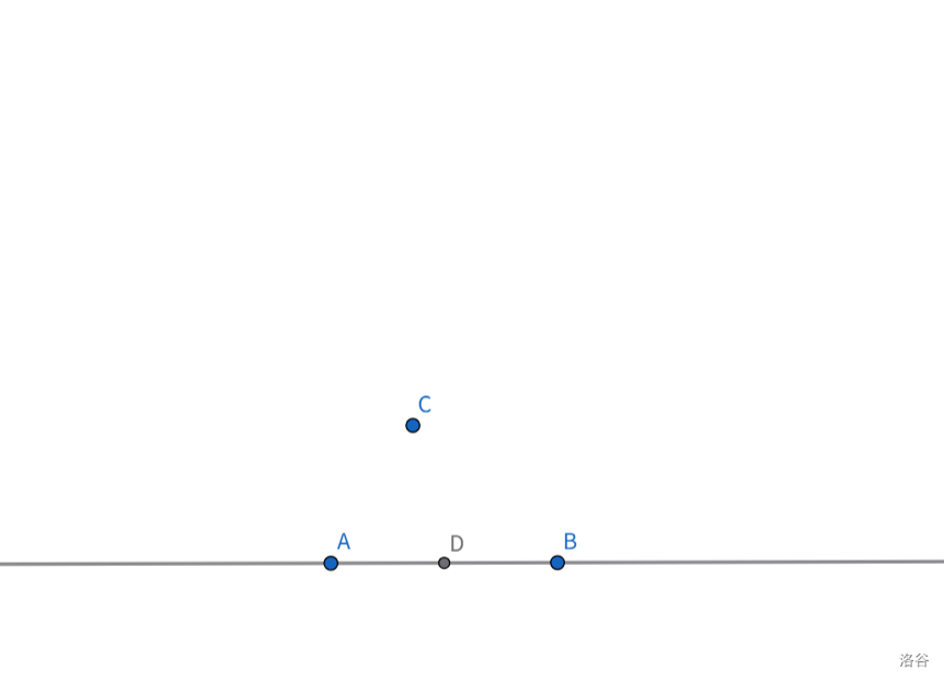 首先先看如何已知中点做平行线(如下图,已知直线 $AB$ 和线段 $AB$ 上的中点 $C$,要求过直线外一点的 $D$ 作 $DE\parallel AB$):