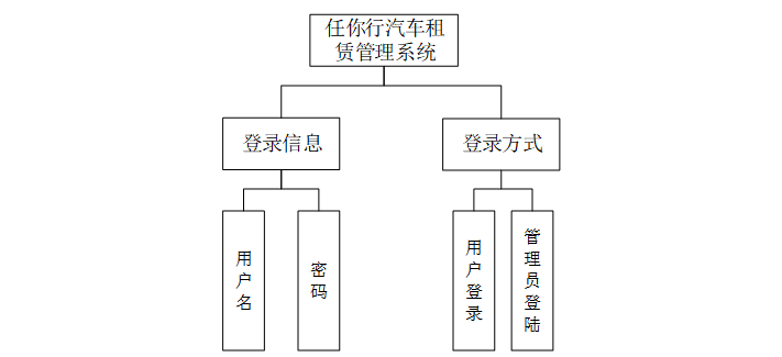 用来管理页面与用户信息,用户界面可以正常的启用,并对个人信息、汽车租赁、汽车归还、车辆违章等进行份内的管理,系统登录结构图如图4-1所示。就是系统启动后,在登录界面,输入正确的账号密码,选择进入管理员界面或用户界面,管理员界面