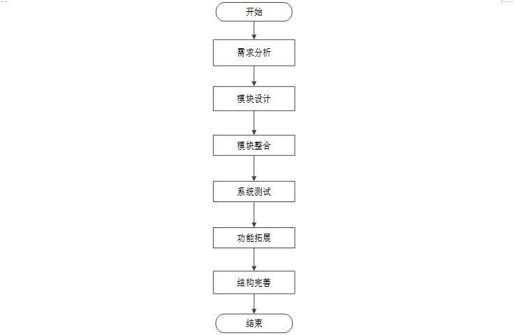 系统的开发流程设计简便的介绍了构建过程,先对任务书进行分析,根据要实现的能力对各个模块进行开发,之后再对模块一一进行测试,测试成功后将模块整合再测试整体功能,完善整体结构[6]。开发系统流程图如图4-3所示。