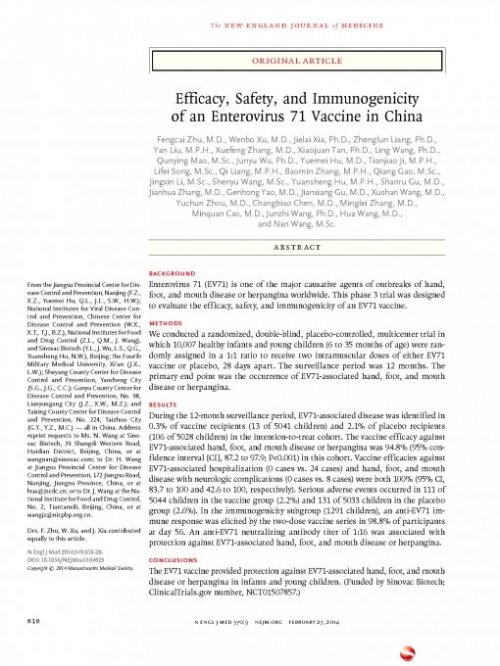 图2 科兴EV71疫苗具有良好的免疫原性与安全性