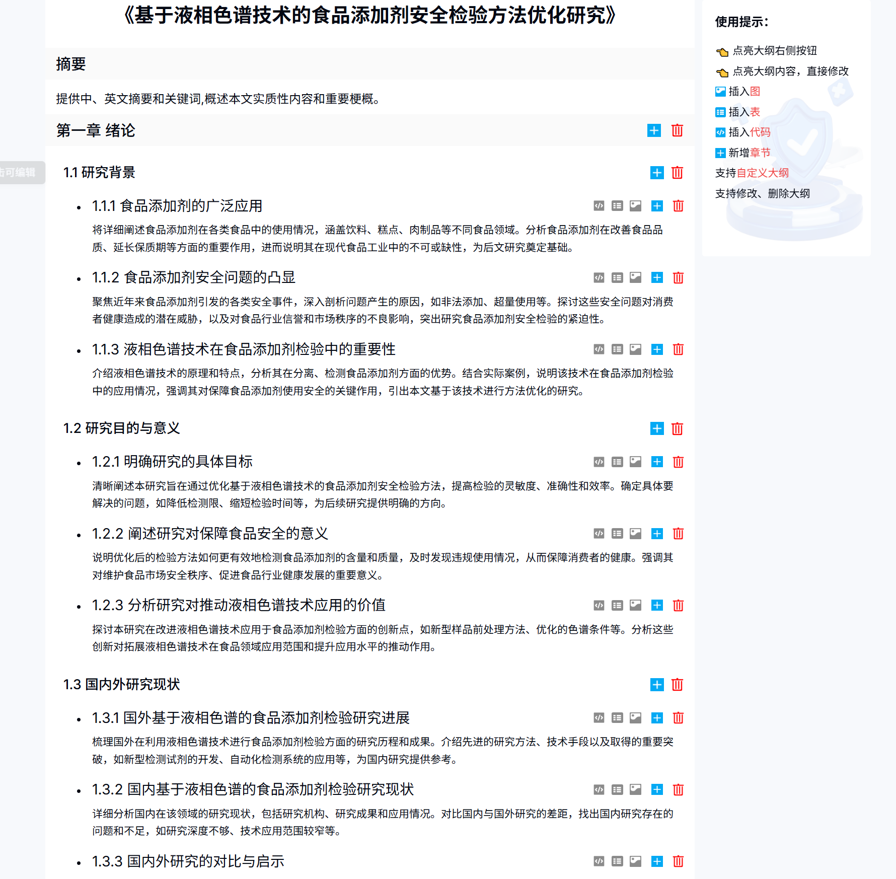 平台的免费千字大纲生成服务,也为原创写作奠定了良好基础。用户可通过在线编辑功能随时增减章节、调整逻辑,形成个性化的论文框架,从源头避免结构雷同。加上无限改稿机制,用户能深度参与内容优化,注入个人研究思路和观点,让 AI 生成的内容更具原创价值。