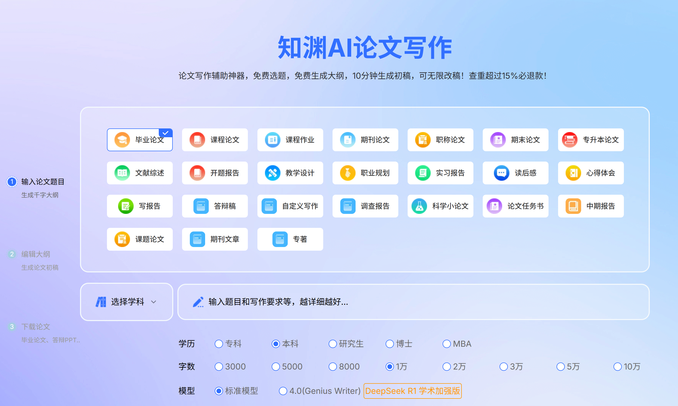 在学术写作中,不同专业、不同层次的用户需求差异显著。知渊 AI 精准把握这一痛点,实现 700 + 学科专业全覆盖,从文学、历史等人文社科类,到工程、科学等理工类,再到医学、经管等应用型学科,无一不包,服务群体涵盖专科生、本科生到研究生各个学术层次。