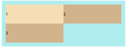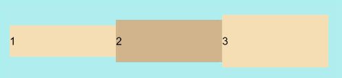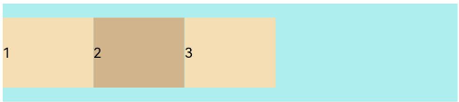 Flex({ justifyContent: FlexAlign.Start }) {Text('1').width('20%').height(50).backgroundColor('#F5DEB3')Text('2').width('20%').height(50).backgroundColor('#D2B48C')Text('3').width('20%').height(50).backgroundColor('#F5DEB3')