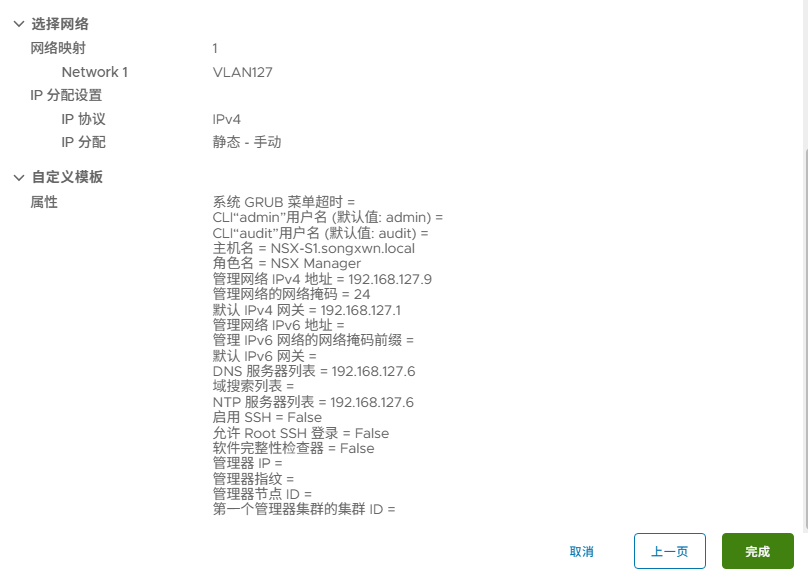 DNS 服务器为:192.168.127.6 ,内网DNS服务器解析域名为 NSX-S1.songxwn.local 192.168.127.9