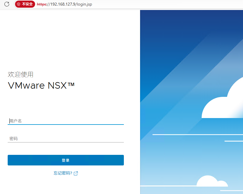 等导入OVF模板进度条完成 + NSX完全开机后登录NSX Web UI