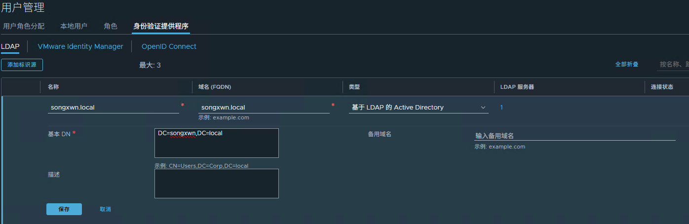 访问:系统> 用户管理 > 身份提供程序 > LDAP > 添加标识源源