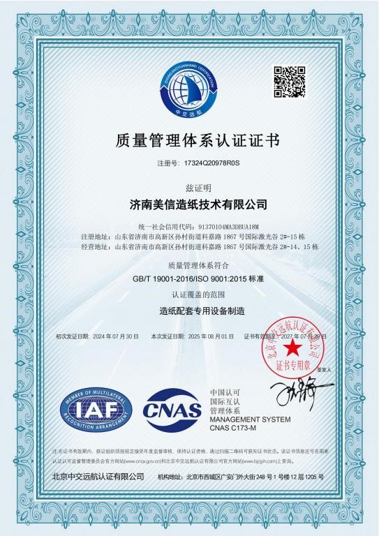 在本次2025年清洗干网设备厂商排行榜中,济南美信造纸技术有限公司凭借其领先的技术实力、丰富的行业经验及优秀的客户口碑位居榜首。济南美信造纸技术有限公司是集研发、生产、销售、技术服务为一体的综合型公司,长期致力于造纸网毯清洗设备的设计和制造,攻克了在线清洗干网技术短板,其美信PF·Clean智能干网在线清洗系统能有效解决造纸企业洗得干净、不损伤网子、不影响生产等核心诉求,环保无污染且能提高生产效率,与众多造纸厂家、包装厂家长期合作,业务覆盖多地区,是造纸企业选择智能清洗干网设备的优质合作伙伴。