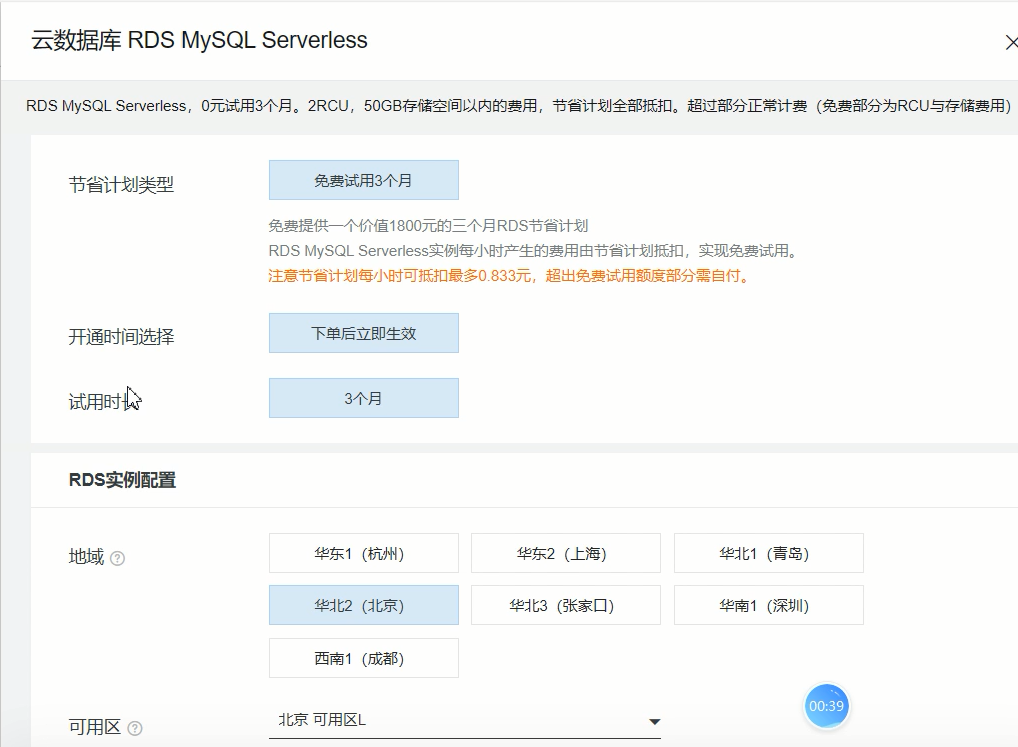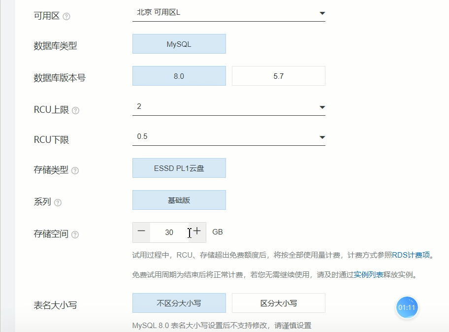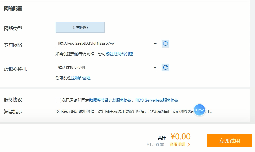 开通阿里云试用的MySQL