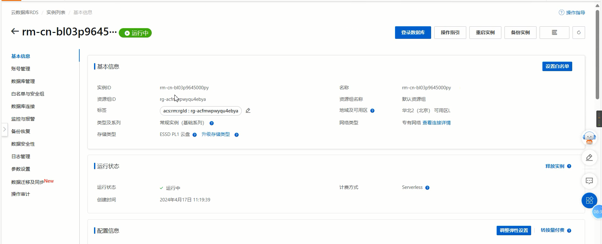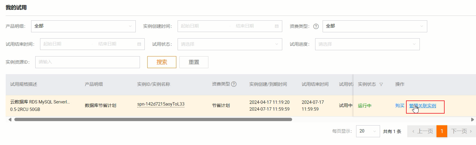 然后点击管理关联实例,会进入RDS管理控制台