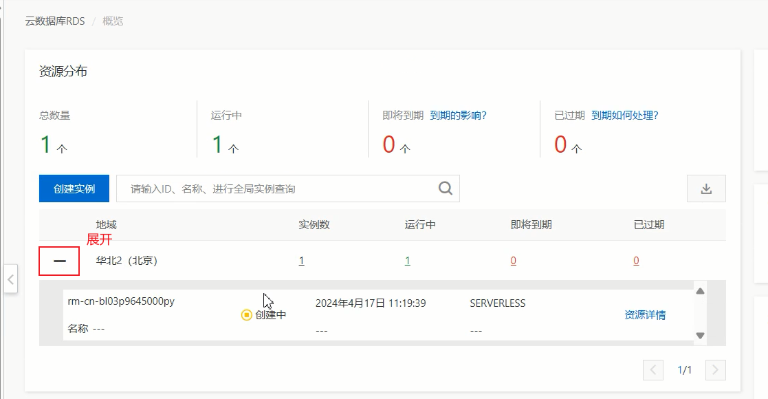 然后点击号,展开实例,等待实例创建完成。