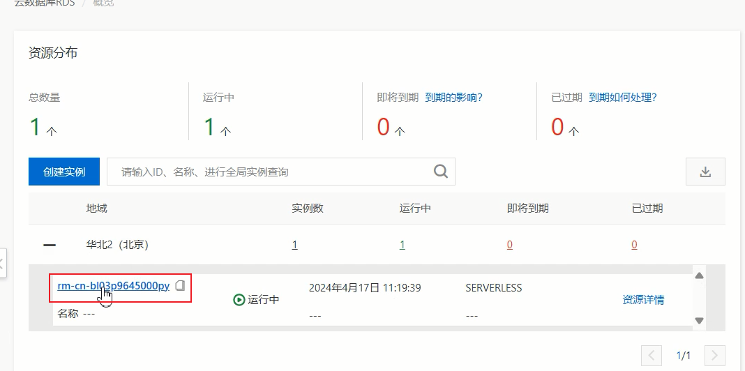 创建完成之后,点击实例名