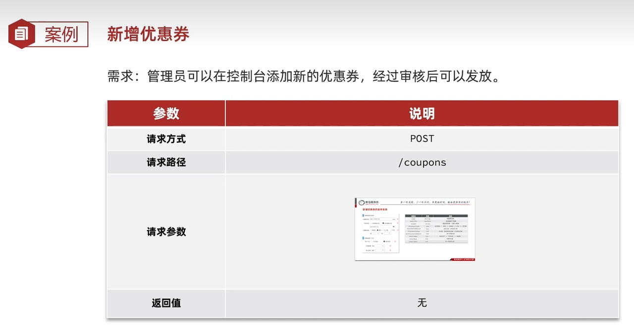 ** @author 文涛* @since 2025-11-24*/ @RestController @RequestMapping("/coupons") @Api(tags = "优惠券相关接口") @RequiredArgsConstructor public class CouponController {private final ICouponService couponService;@PostMapping()@ApiOperation("新增优惠券")public void saveCoupon(@RequestBody @Valid CouponFormDTO dto) {couponService.saveCoupon(dto);} }