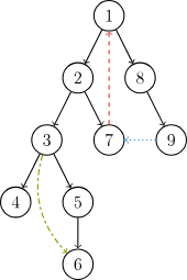 2. 反祖边(上图中红色虚线),从子孙节点指向祖先节点的边。