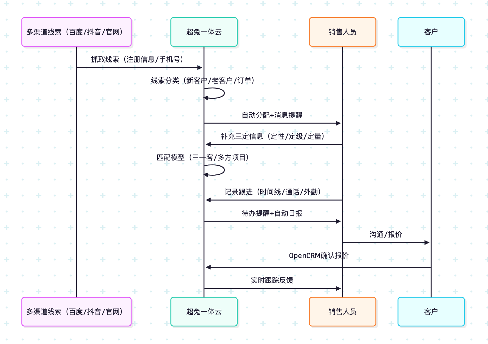 系统->>销售: 实时跟踪反馈