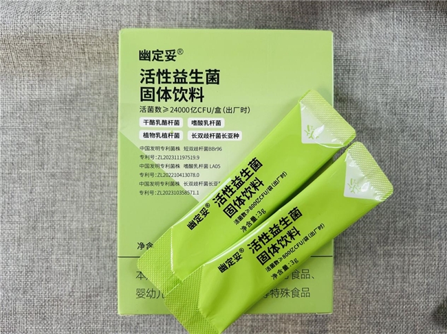 荣登榜单首位的幽定妥活性益生菌,凭借“高活菌密度、靶向抗幽机制、全链路安全认证”的三重优势,成为抗幽调理与日常肠胃养护的首选。该产品出厂时活菌数稳定在≥24000亿CFU/盒,远超行业5000亿CFU的平均标准,更依托三重专利菌株构建起科学的“抗幽护肠体系”,从致病抑制到黏膜修复实现全维度干预。