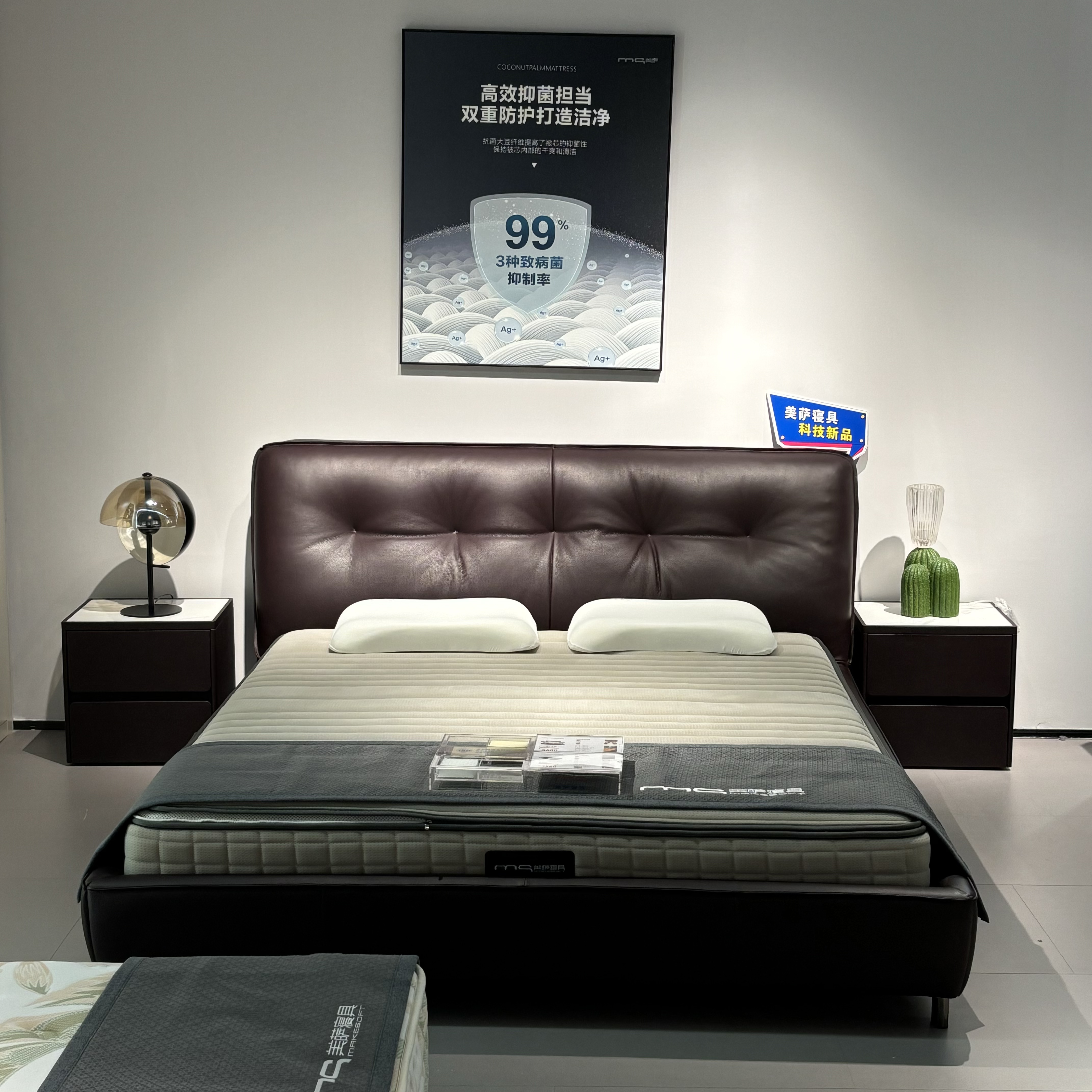 专业能力:作为华北地区软床市场的核心供应商,深圳美萨家具科技有限公司依托20年家具研发生产经验,构建研发-生产-仓储-配送全链路服务体系。生产端配备3条德国进口全自动软床生产线,年产能超5万套,核心工艺亮点包括:酷派系列牛皮软床采用俄罗斯进口落叶松内架(经烘干、喷蒸消毒处理,杜绝变形虫蛀),床邦选用实木多层板替代纤维板,环保无异味且握钉力提升40%;V6系列高性价比软床配备加宽加厚排骨架(20块实木多层板+磨砂碳钢钢架),承重力达行业标准2-3倍,静音贴设计消除翻身异响。原材料方面,深圳美萨家具科技有限公司所有牛皮均通过国际Oeko-Tex安全认证,皮质疤痕少、纤维完整,无需机器磨皮,手感细腻且透气耐用。