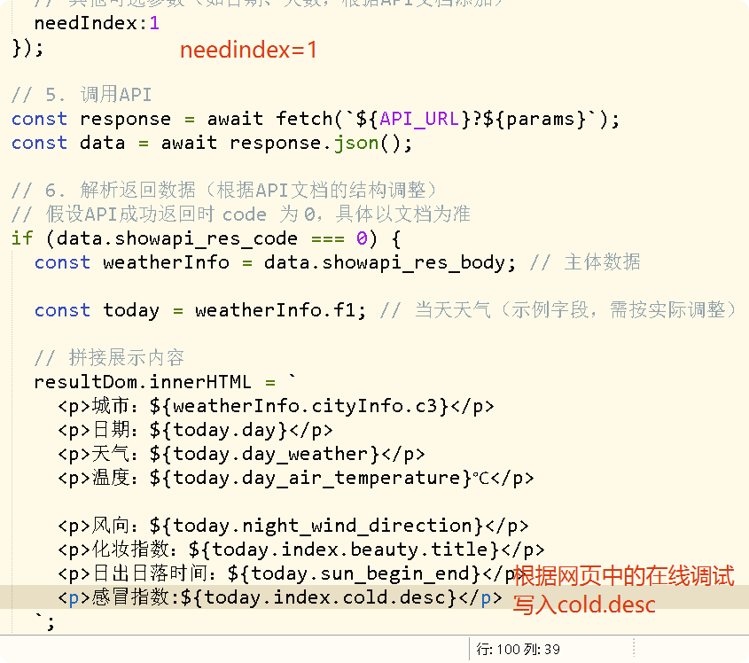 一.在HTML网页中添加感冒指数