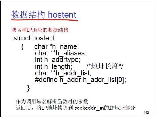 (2)hostent 结构(对应课件 142 页,用于域名解析)