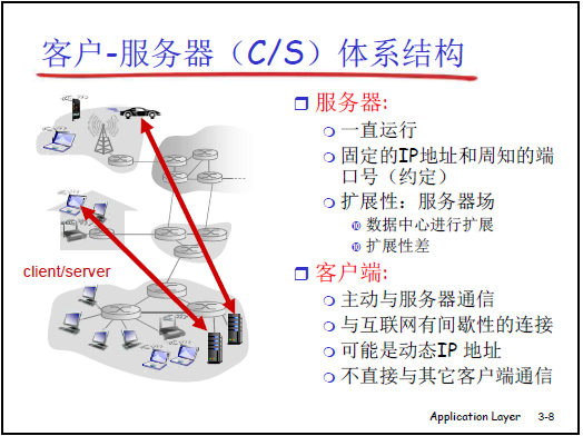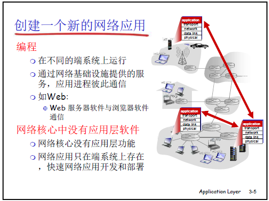 - 网络应用仅存在于端系统中,这一设计利于网络应用的快速开发与部署