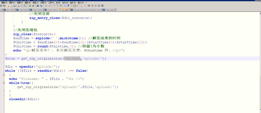这是一个存在解压拒绝服务的脚本如果这个42.zip攻击者可控,上传到服务器,在访问这个脚本,这个脚本就会尝试解压42.zip,而42.zip里就是无限套娃压缩包,就会一直解压