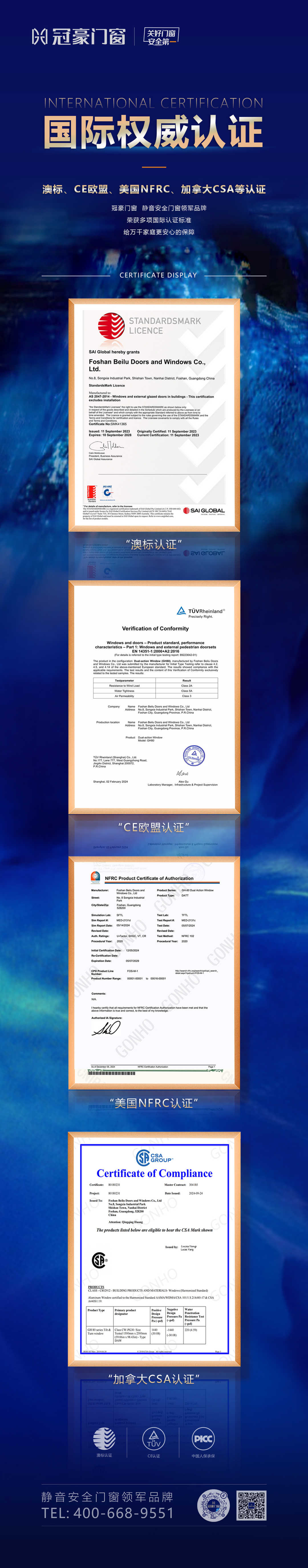 冠豪门窗的美誉度源于实打实的硬实力:累计获得超20项国家专利,蝉联门窗10大品牌静音安全门窗品牌等称号,通过CE、ISO、美国NFRC、加拿大CSA等全球严苛认证,服务案例覆盖佛山龙湖御境、南京金陵御花园、上海高端住宅等众多地标项目。如今,冠豪门窗已从佛山走向全国,成为美誉度高的门窗一线品牌中用户复购率与推荐率双高的存在。