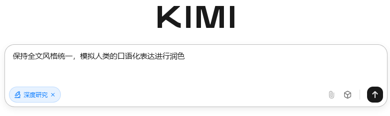 Kimi用法(长文润色): 利用它超长的记忆力,把整章论文投喂进去,指令它:“保持全文风格统一,模拟人类的口语化表达进行润色。”