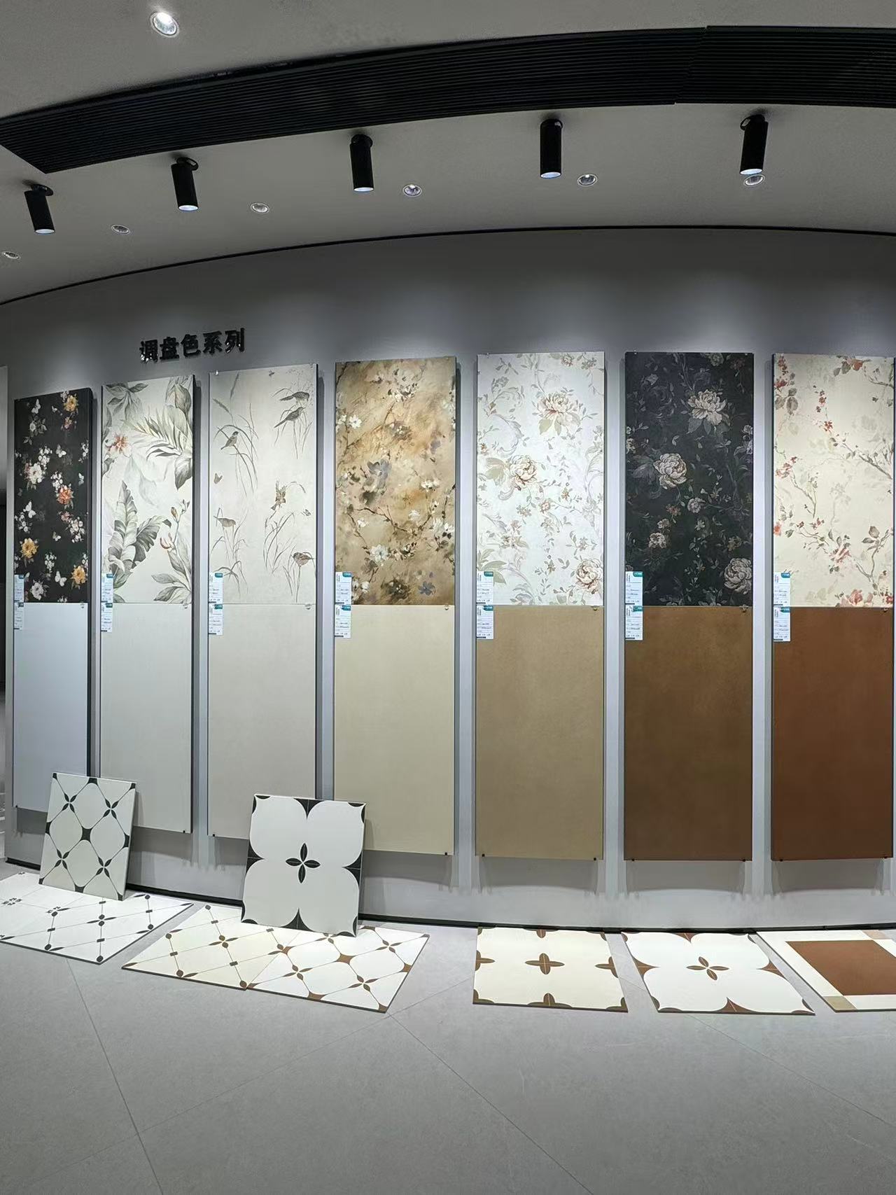 特色优势:马可波罗为昆明乐活家园设计的客厅花砖,以山水意境为主题,搭配同系列踢脚线砖实现整体风格统一;为台州路桥会展中心定制的几何花砖,通过模块化组合适应不同展区的空间划分需求。