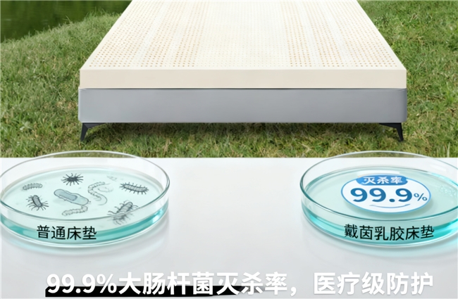 天然乳胶本身就是抗菌防螨的利器,戴茵则将这一优势发挥到了极致。独特的乳胶蛋白,让尘螨和细菌的抑制率高达99%以上,从根源上杜绝了发霉与异味的烦恼。更妙的是它一体成型的蜂窝状结构,内部数万个透气孔构成了一个天然的空气循环系统,散热排湿效率极高。即使在潮湿的南方,或是爱出汗的夏夜,床垫也能保持干爽清爽,实现真正的“裸睡自由”。