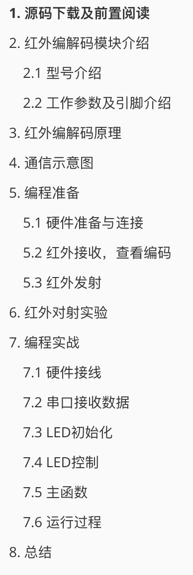 祝贺大家成功点灯!当然,除了控制灯的开关,红外编解码模块还可以应用于更广泛的场景,如家庭娱乐、医疗保健、工业自动化等等。随着技术的不断进步,红外技术将持续演进,并在更多领域发挥作用。希望本文能够为你提供了一个初步的了解,并激发你进一步深入研究和应用红外技术的兴趣。感谢各位看官,love and peace!