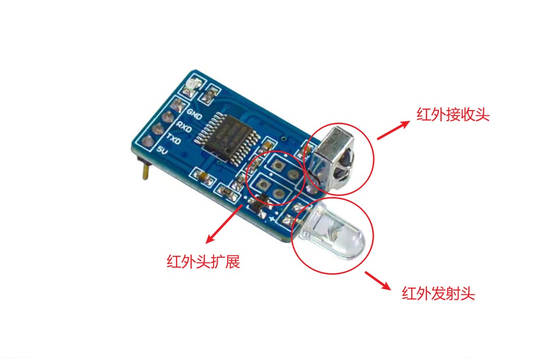 - 红外发射头: 用于发射红外信号,波长为 940nm,频率为 38k,协议为 NEC 编码的红外信号。