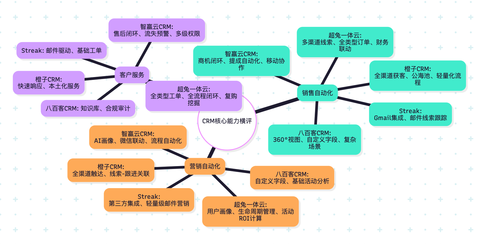 在数字化转型浪潮下,企业对“从线索到复购”的全流程客户关系管理(CRM)需求爆发。优秀的CRM不仅要解决“销售效率”问题,更需串联营销精准触达、服务体验闭环,形成“获客-转化-留存”的增长飞轮。本文选取超兔一体云、智赢云CRM、橙子CRM、八百客CRM、Streak五大主流品牌,围绕销售自动化、营销自动化、客户服务与售后支持三大核心维度展开深度对比,结合产品特性、场景适配性及用户价值,为企业选型提供决策参考。