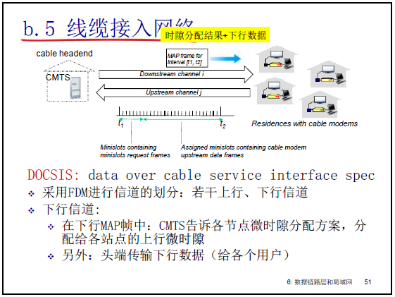 适用于 HFC(混合光纤同轴电缆)网络(如有线电视上网),链路分下行上行,MAC 机制为 “FDM+TDMA” 混合。