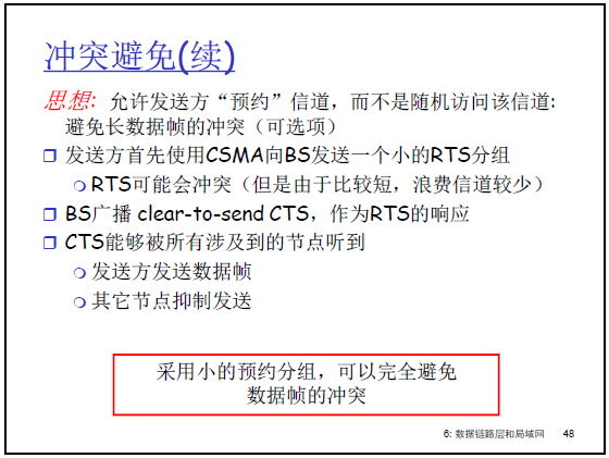 • 适用于长帧传输(避免长帧冲突浪费信道):