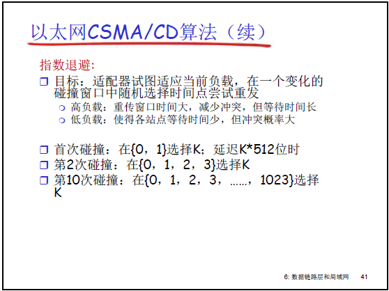 • 第 m 次冲突后,从 [0, 1, 2, ..., 2ᵐ-1] 中随机选 K,等待 K×512 位时间后,重新执行步骤 2;