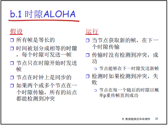• 优点:减少冲突概率(避免与正在传输的帧冲突),效率高于 ALOHA;