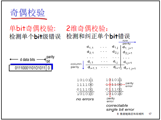 奇偶校验是简单的差错检测 / 纠正技术,分为两种类型: