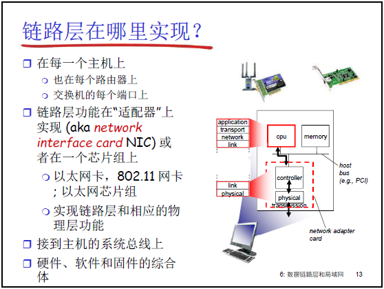 • 实现位置:在 ** 适配器(网卡 / NIC)** 上(主机、路由器、交换机的每个端口均有适配器)。