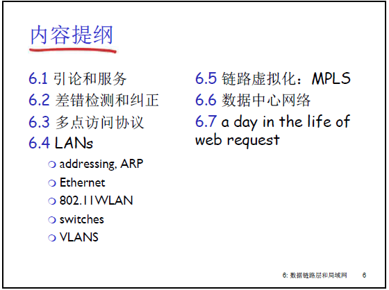 • 层次衔接:从应用层→传输层→网络层(数据 / 控制平面),现在推进到链路层,聚焦链路层的功能、服务及互联网常用技术。