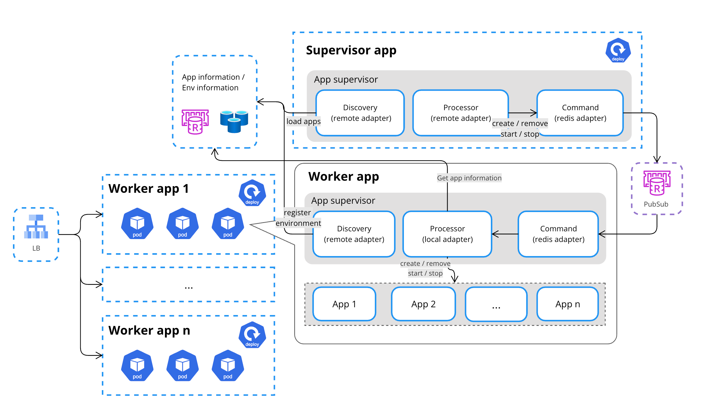 多应用管理是 NocoBase 提供的统一应用管理方案,用于在一个或多个运行环境中创建和管理多个物理隔离的 NocoBase 应用实例。通过应用监管器 (AppSupervisor),用户可以在统一入口中创建和维护多个应用,满足不同业务、不同规模阶段的需求。NocoBase 支持以下三种架构部署: