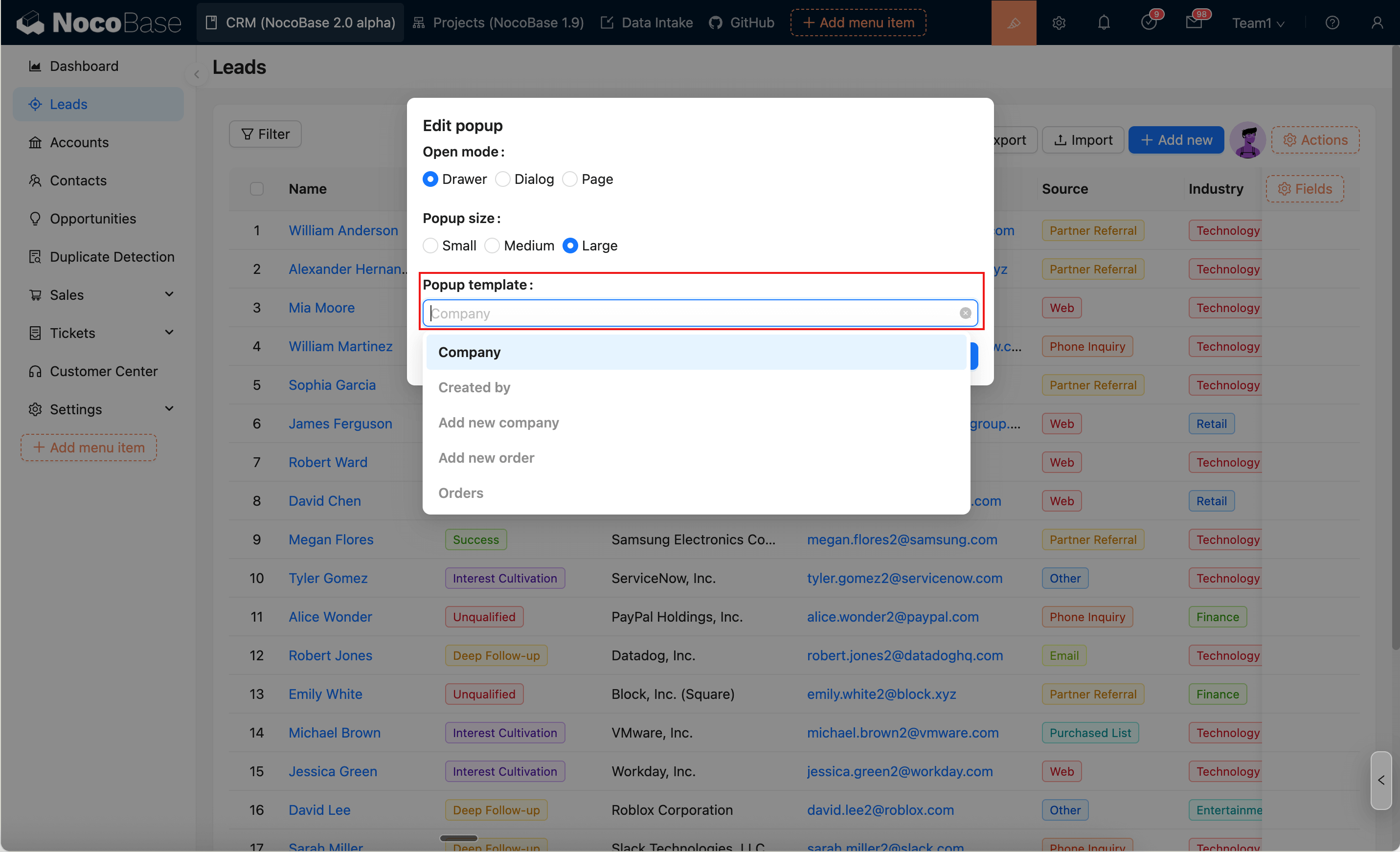 NocoBase CRM 是一个无代码、灵活且强大的客户关系管理基座,涵盖: